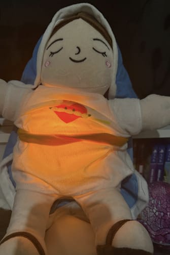 It can be! Many families use it during prayer or as a reminder of faith and God’s love — but it’s also simply a comforting companion.